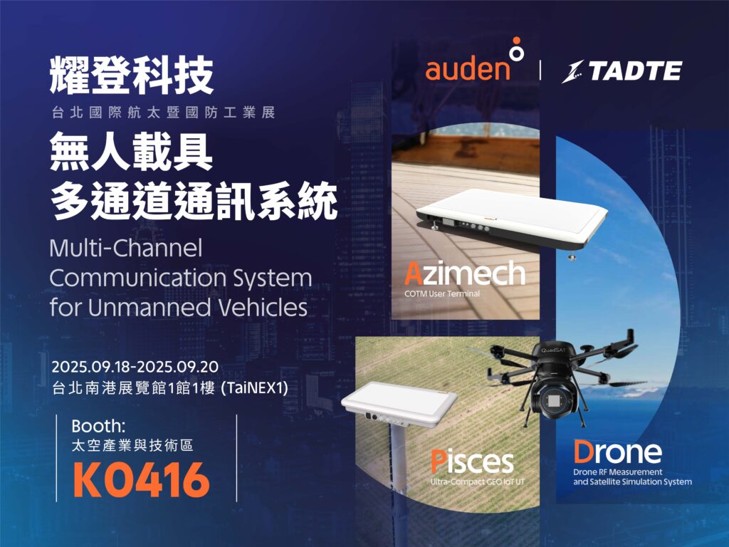 耀登将于2025年09月18日至09月20日,参展于台北南港展览馆举办的台北国际航太暨国防工业展,现场展示无人载具通讯技术与解决方案,诚挚邀请各界莅临摊位,共同探讨未来产业发展趋势!