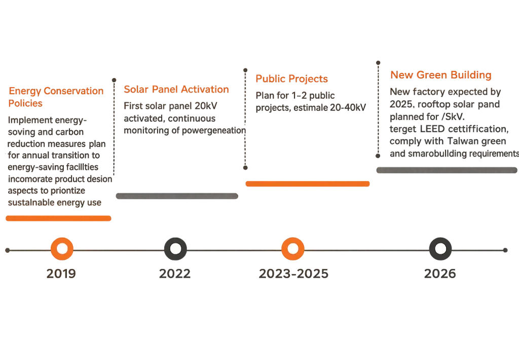 - 19.8KW solar panels: In 2024, 29,445 kWh of green electricity was used, reducing carbon emissions by 14.55 tons, and 29 T-REC renewable energy certificates were obtained.