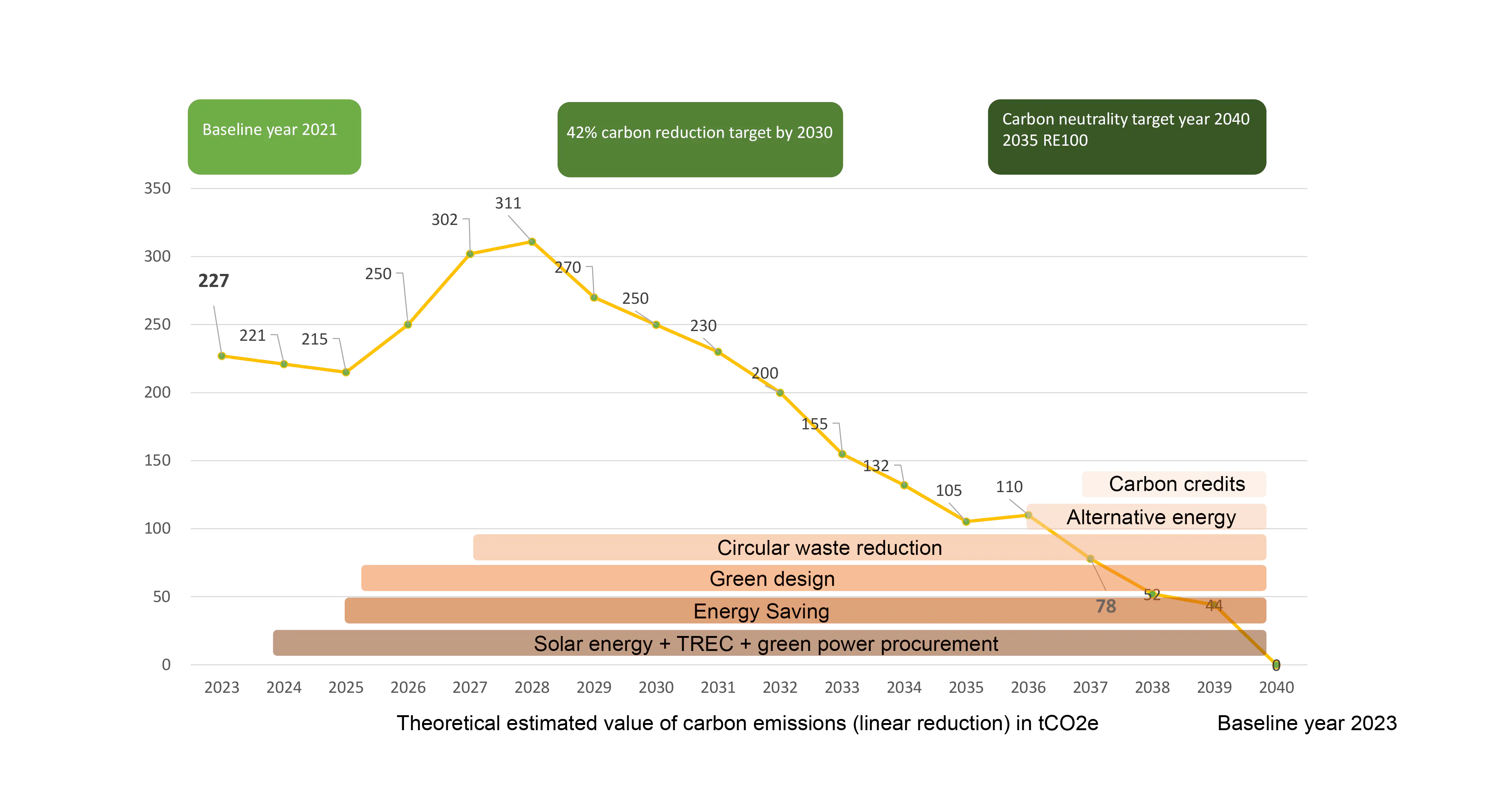 By 2035, achieve the goal of 100% green electricity. Achieve carbon neutrality by 2040. |